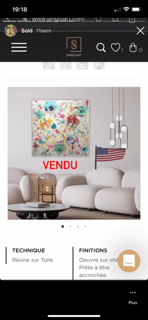 Rétrospective des ventes à l’international effectuées avec la galerie Singulart à ce jour.