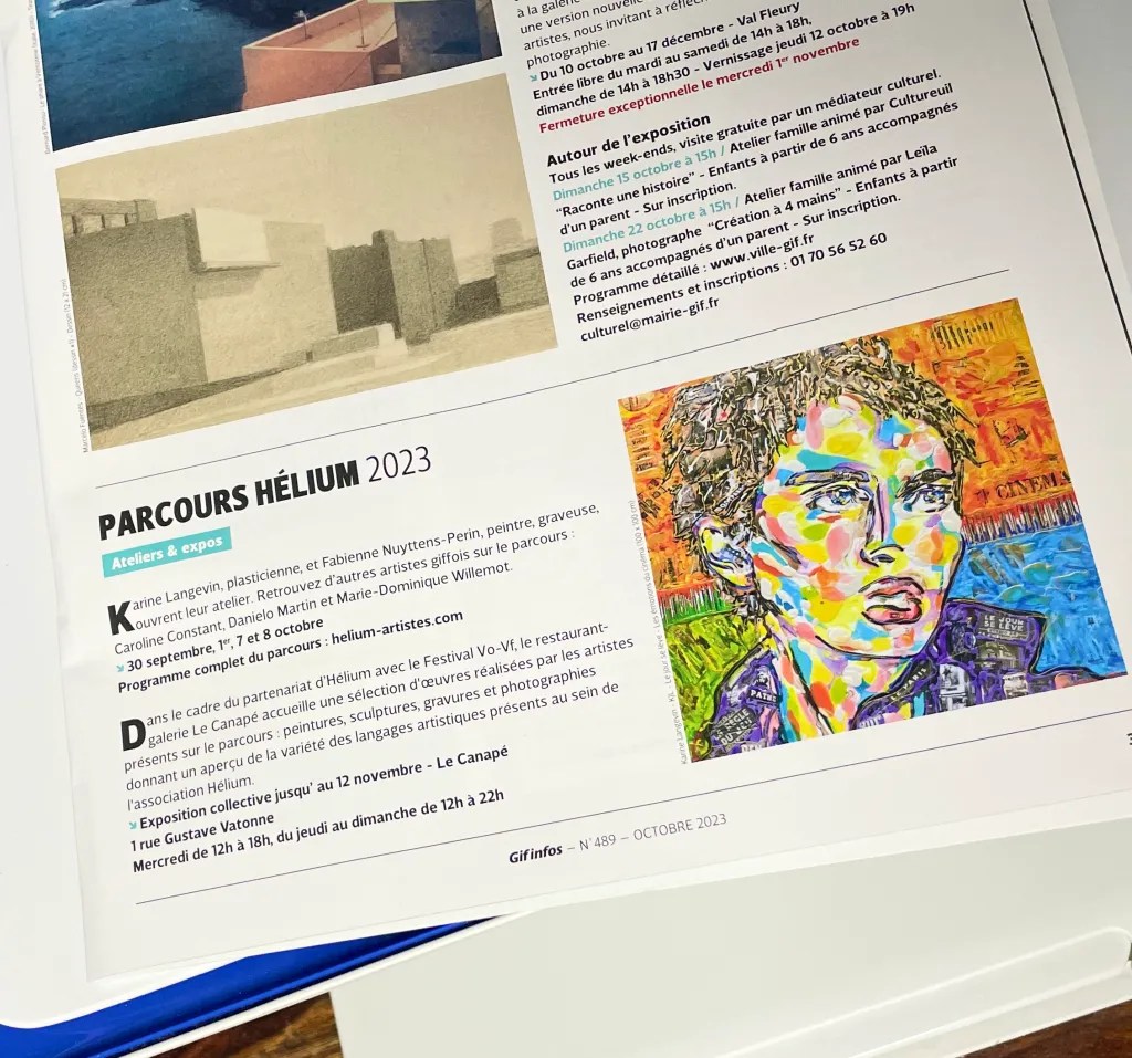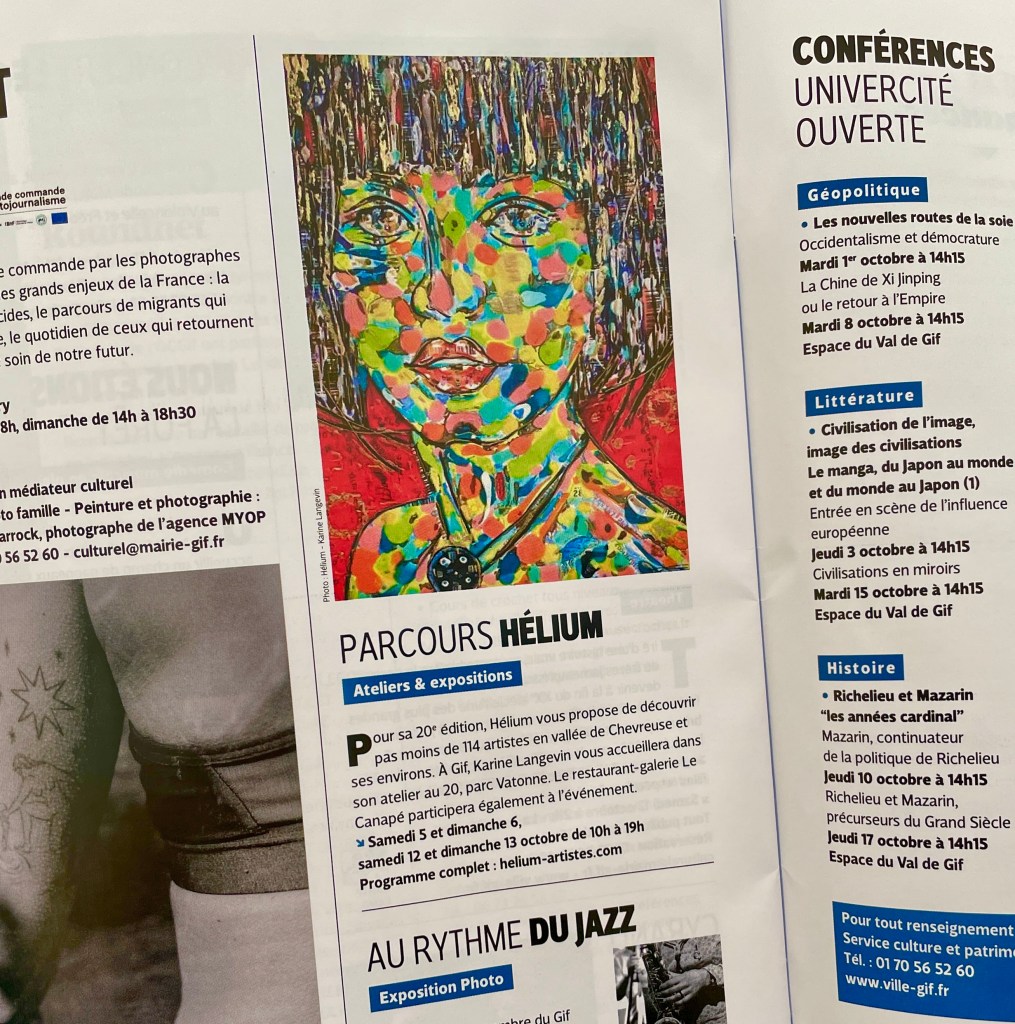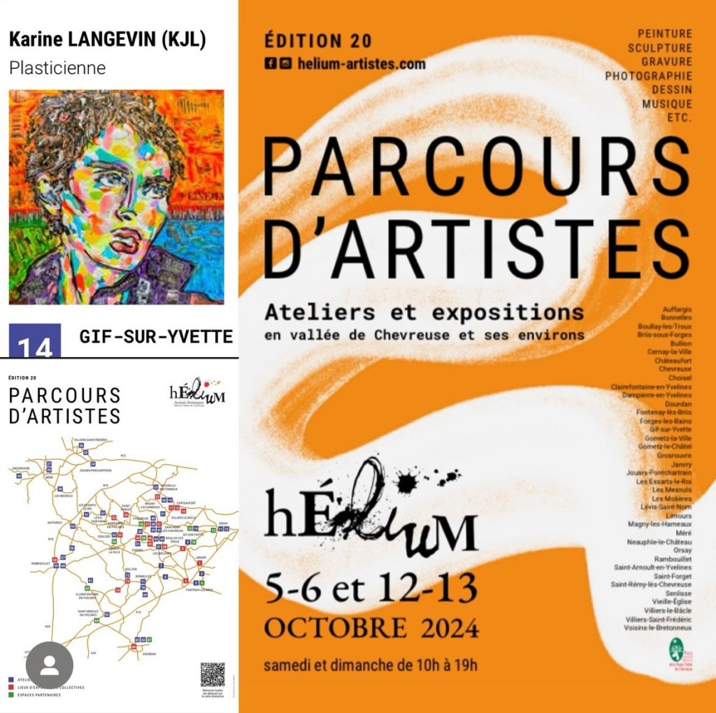 Septembre/Octobre 2023 – Parcours d’Artistes avec HELIUM – ouverture d’atelier sur deux WE les 30 septembre-1er octobre et les 07 et 08 octobre à Gif-sur-Yvette – voir les vidéos sur Instagram @painter.karine.langevin.kjl et celles sur @YouTube