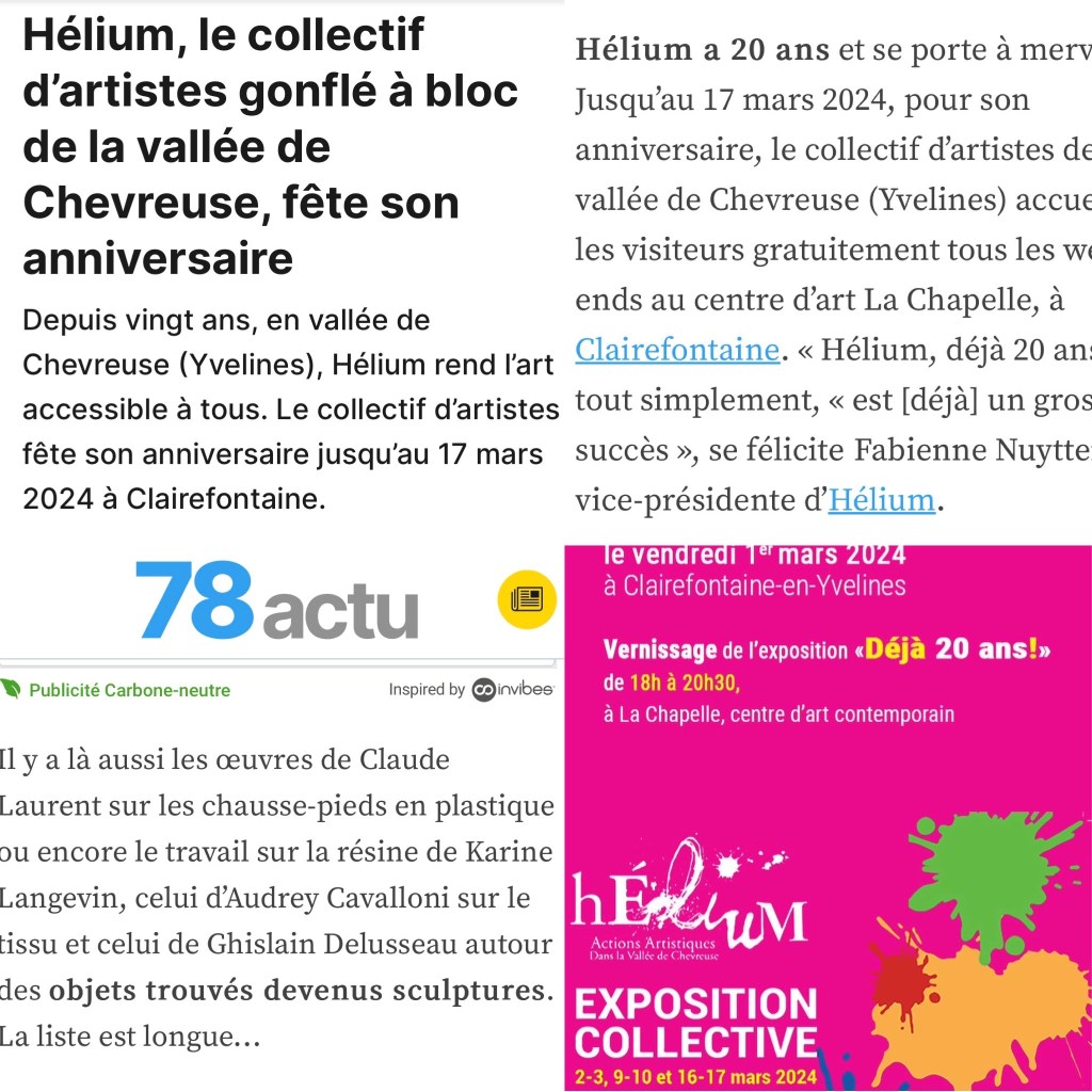 Mars – Hélium déjà 20 ans ! Exposition collective à la Chapelle de Clairefontaine-en-Yvelines