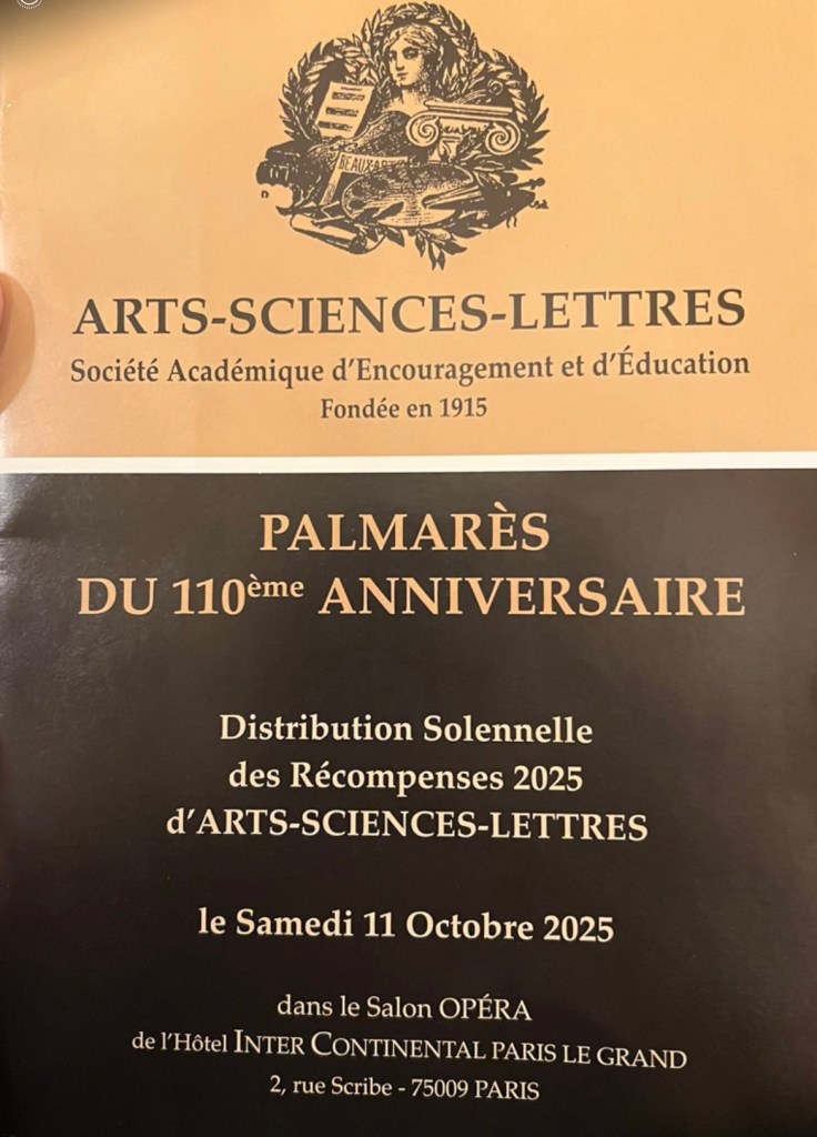 Octobre – Obtention d’une médaille d’étain par Arts-Sciences-Lettres – Paris