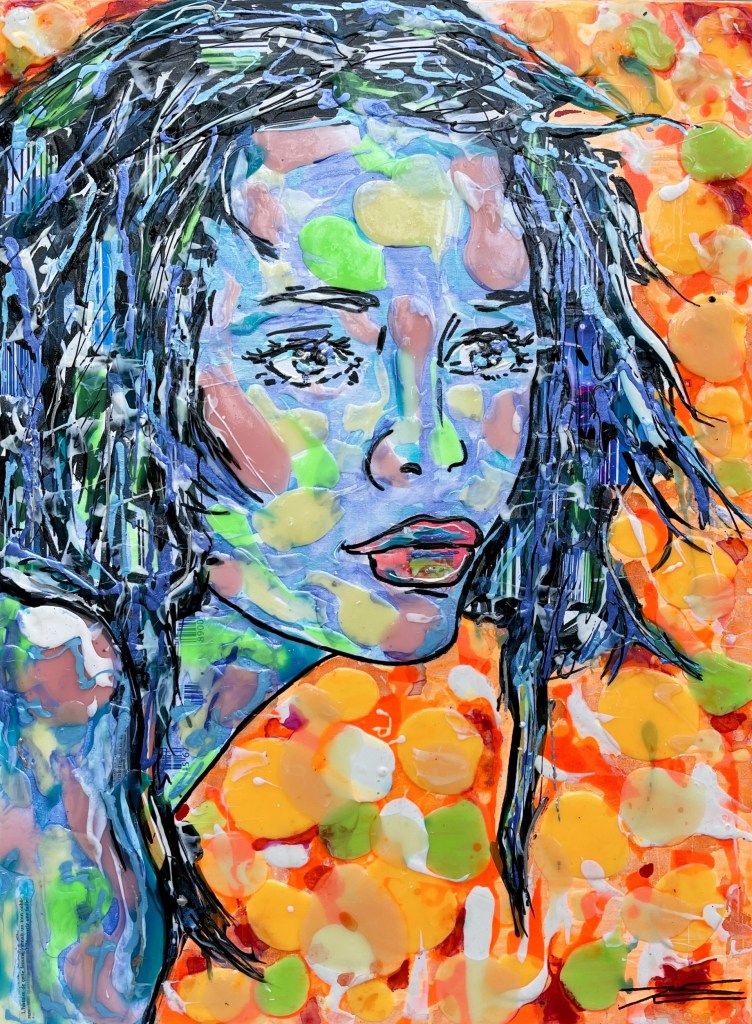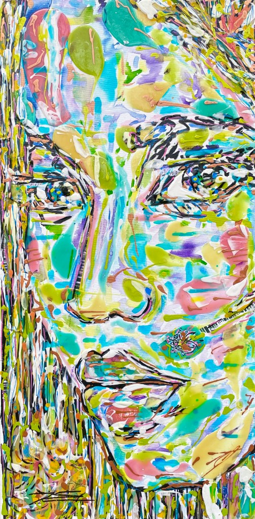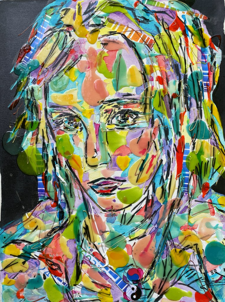 Réalisé principalement en résine et enrichi de techniques mixtes, le tableau intègre des encres fluorescentes et phosphorescentes qui renforcent son aura énigmatique. « Smoky Fog » se dresse comme un visage frontal, révélant une vérité que l’on préfère souvent ignorer.
