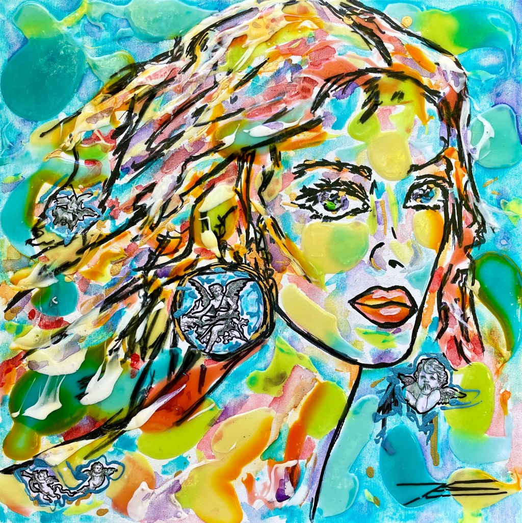 Cette oeuvre « Leeloo » a été inspirée par le film de Luc Besson « Le 5ème élément ». Elle représente Leeloo et son énergie, sa volonté, sa force, sa combativité et également sa vulnérabilité et sa fragilité. Une vraie combattante des temps actuels.